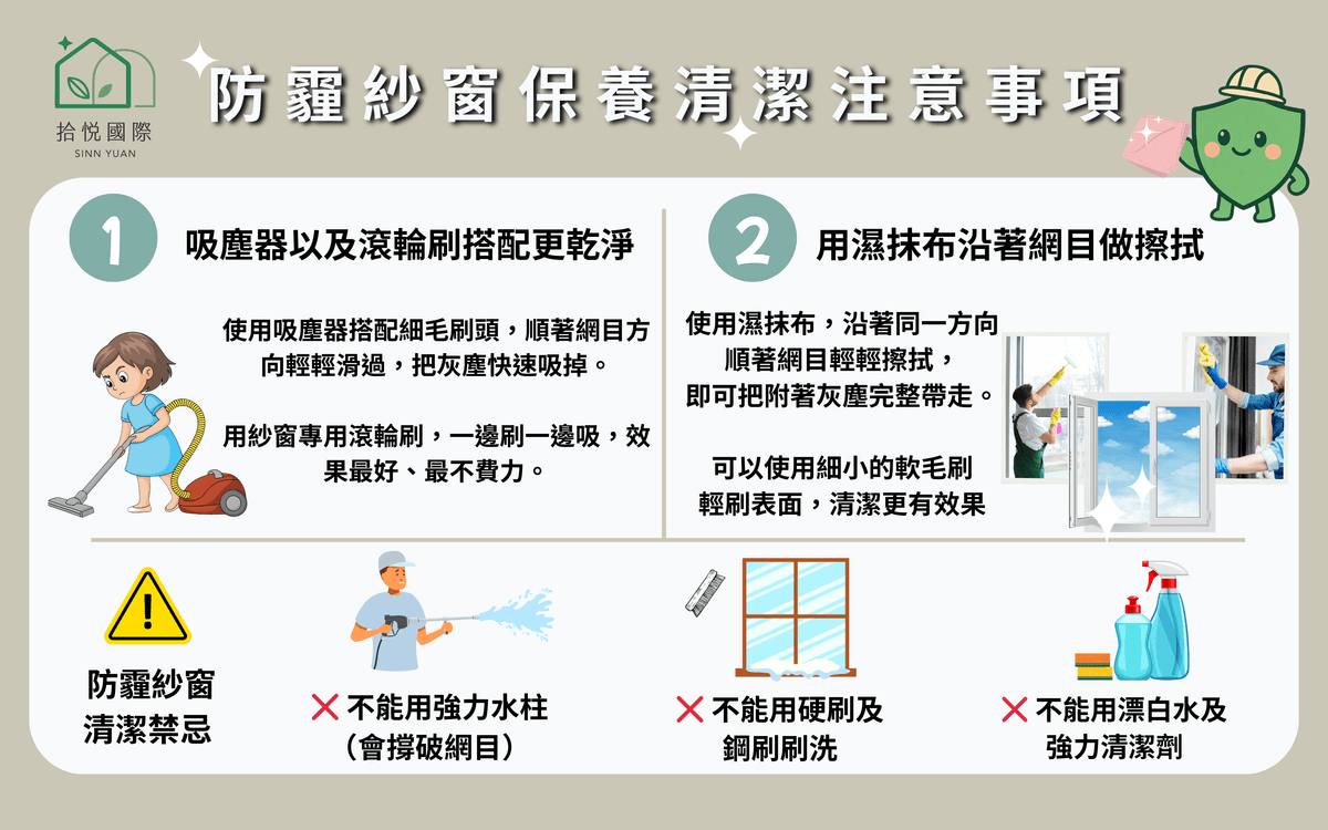 開始研究不同的紗窗材質、工法、網目密度、靜電技術……